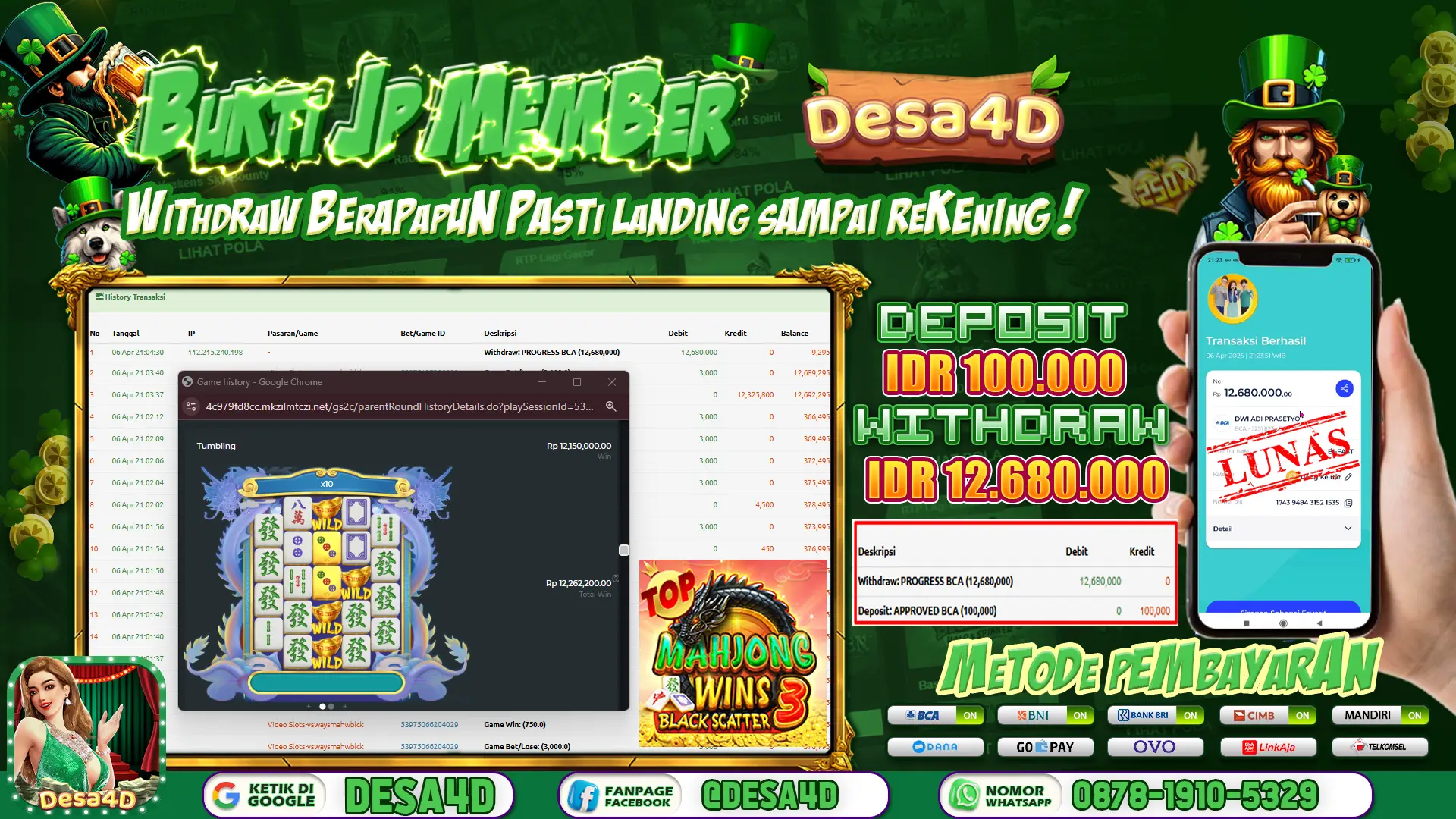 DESA4D Bukti Kemenangan MAHJONG WINS 3