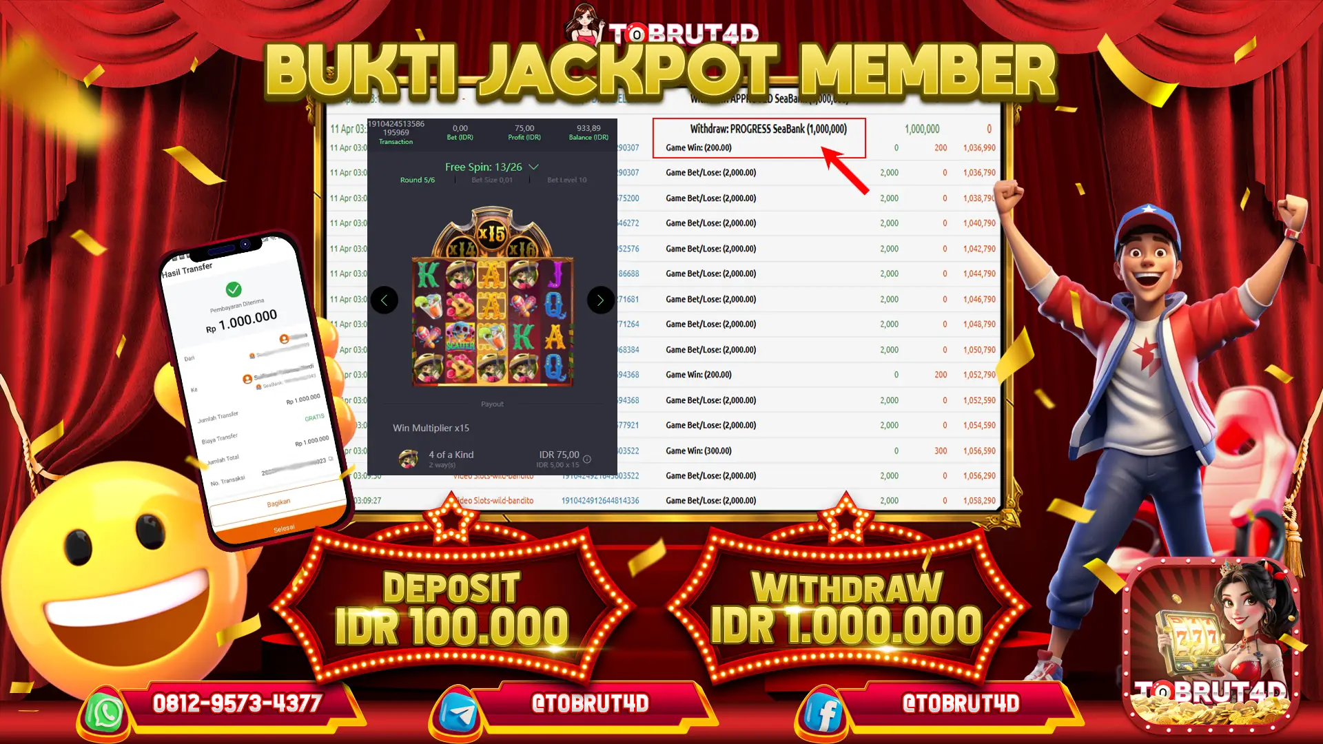 Selamat Kepada ID : N*******2 Atas Withdraw Rp. 1.000.000 Hari ini. Ditunggu Withdraw Selanjutnya dan ajak juga teman temannya bergabung di TOBRUT4D