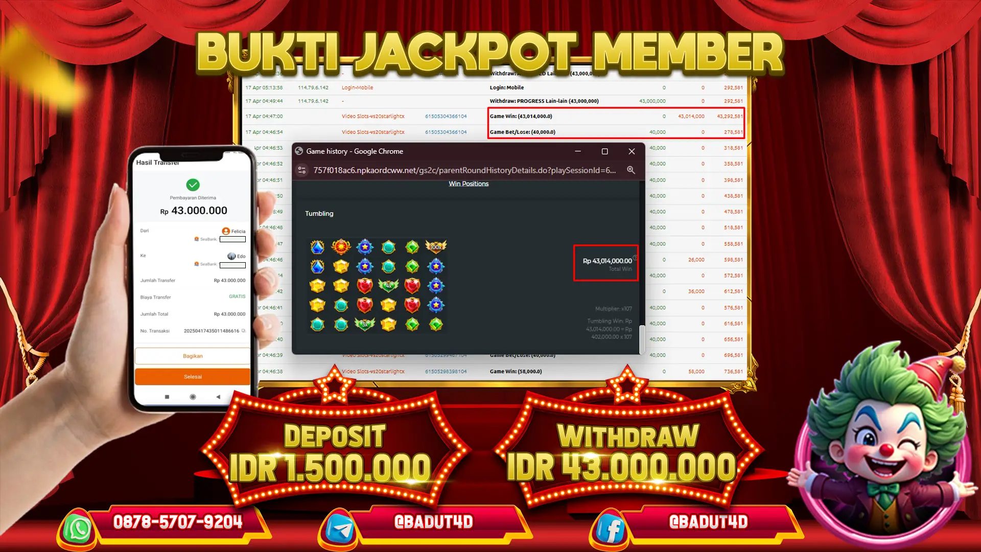 Selamat Kepada ID : E*******O Atas Withdraw Rp. 43.000.000 Hari ini. Ditunggu Withdraw Selanjutnya dan ajak juga teman temannya bergabung di BADUT4D