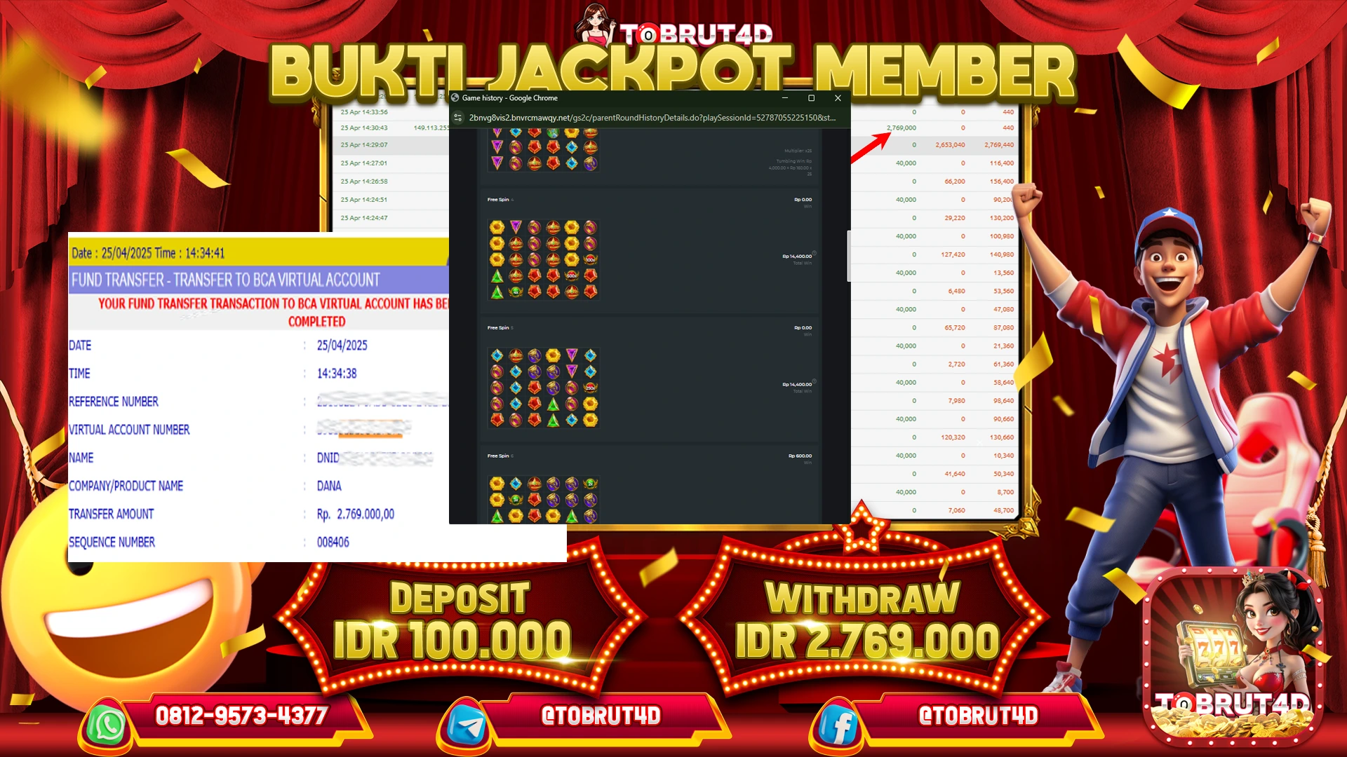 Selamat Kepada ID : B**** Telah berhasil mendapatkan kemenangan besar pada permainan GATES OF OLYMPUS 1000 kemenangan Sebesar 2.769.000,Setelah mengisi formulir withdraw dengan kurung waktu hanya 5 – 10 menit pihak tobrut4d sudah melakukan transfer kepada pemilik Userid dan dana sudah dapat di cairkan oleh pemenang. Bukti pembayaran yang kami berikan merupakan bukti pembayaran yang SAH / VALID yang langung di dapatkan melaui tanda transfer transaksi dari Bank yang di tuju.