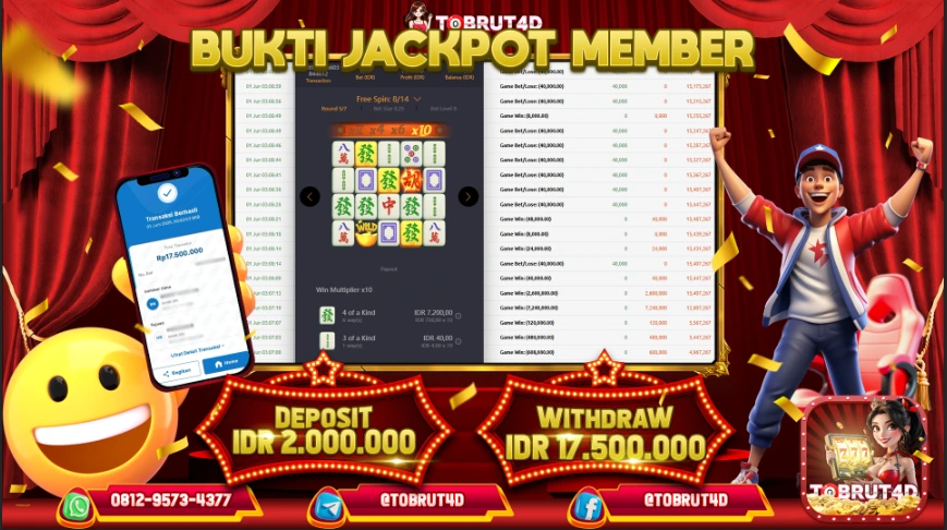 Selamat Kepada ID : B*****V Telah berhasil mendapatkan kemenangan besar pada permainan MAHJONG WAYS 1 kemenangan Sebesar 17.500.000,Setelah mengisi formulir withdraw dengan kurung waktu hanya 5 – 10 menit pihak tobrut4d sudah melakukan transfer kepada pemilik Userid dan dana sudah dapat di cairkan oleh pemenang. Bukti pembayaran yang kami berikan merupakan bukti pembayaran yang SAH / VALID yang langung di dapatkan melaui tanda transfer transaksi dari Bank yang di tuju.
