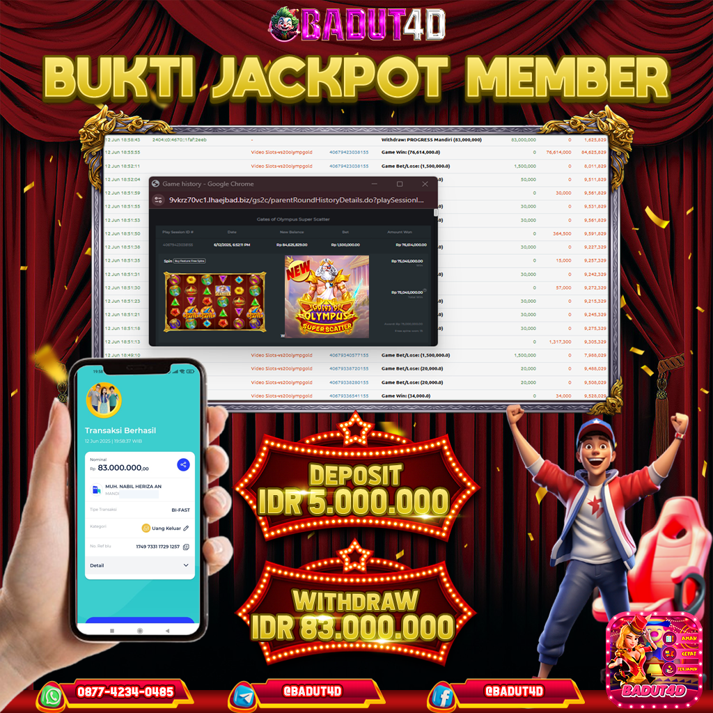 Selamat kepada ID : D****14 Atas Withdraw Rp. 83.000.000 Hari ini. Ditunggu withdraw selanjutnya dan ajak juga teman temannya bergabung di BADUT4D