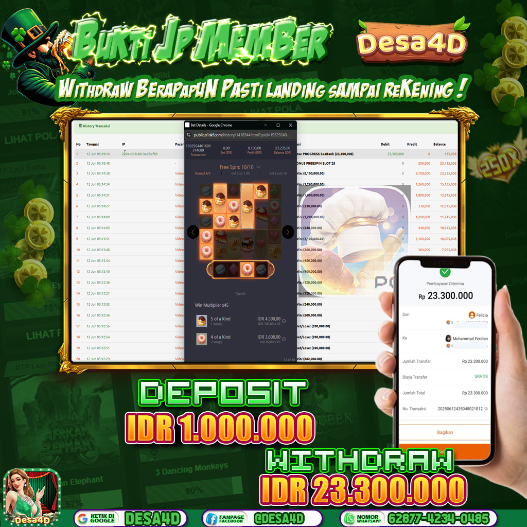 Tak hanya itu, kami juga menyediakan berbagai promo menarik, mulai dari bonus new member, cashback, hingga free spin setiap harinya! Sistem deposit dan withdraw kami cepat serta aman, didukung berbagai metode pembayaran termasuk e-wallet dan bank lokal. Bergabunglah sekarang dan rasakan sendiri keberuntungan Anda di DESA4D Situs Slot Gacor 2025, di mana jackpot besar selalu siap menanti Anda!