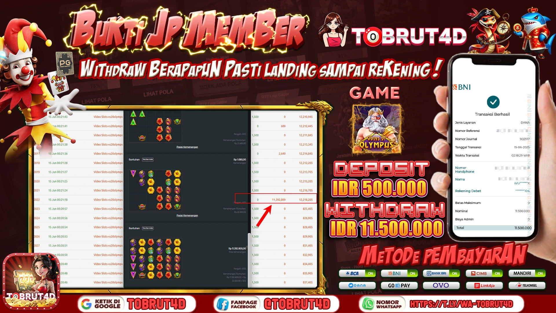 TOBRUT4D JACKPOT GATES OF OLYMPUS 1000 Rp 11.500.000