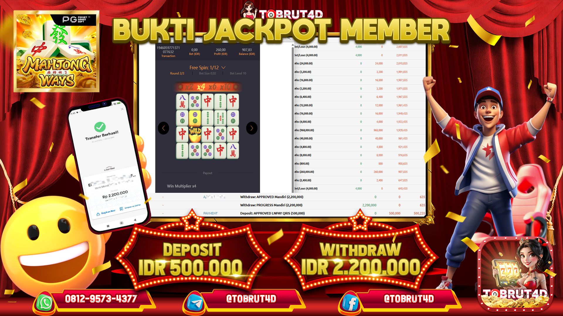 Selamat Kepada ID : HJ*****C Telah berhasil mendapatkan kemenangan besar pada permainan MAHJONG WAYS 1 kemenangan Sebesar 2.200.000,Setelah mengisi formulir withdraw dengan kurung waktu hanya 5 – 10 menit pihak tobrut4d sudah melakukan transfer kepada pemilik Userid dan dana sudah dapat di cairkan oleh pemenang. Bukti pembayaran yang kami berikan merupakan bukti pembayaran yang SAH / VALID yang langung di dapatkan melaui tanda transfer transaksi dari Bank yang di tuju.