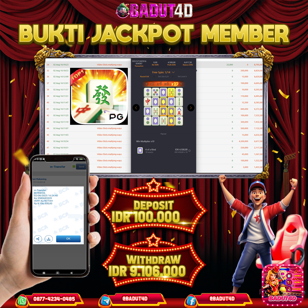 BADUT4D Bukti Kemenangan Sangat Besar Mahjong Ways 1