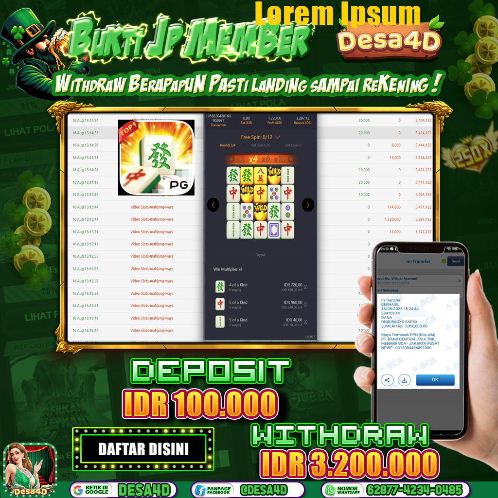 DESA4D Bukti Kemenangan Mahjong Ways PG Soft