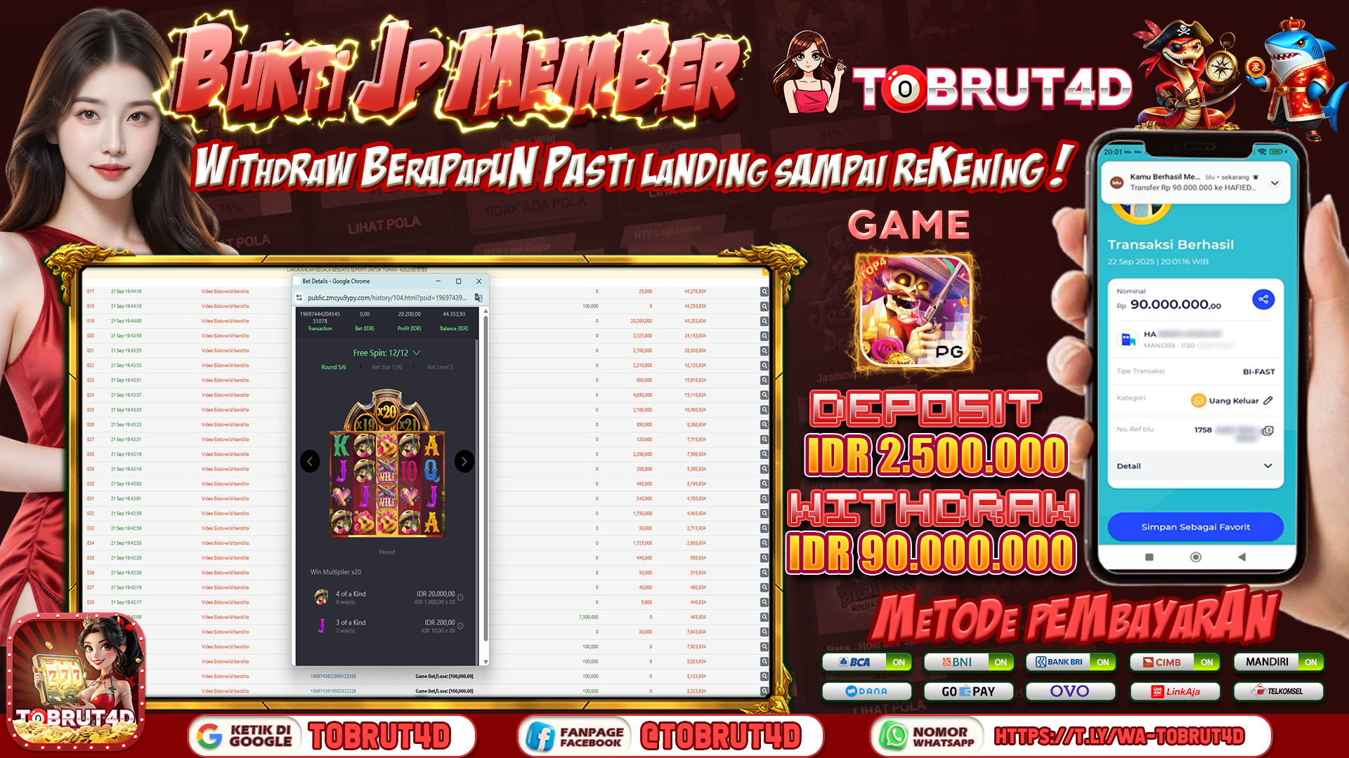 Selamat Kepada ID :SI****M Telah berhasil mendapatkan kemenangan besar pada permainan WILD BANDITO kemenangan Sebesar 90.000.000,Setelah mengisi formulir withdraw dengan kurung waktu hanya 5 – 10 menit pihak tobrut4d sudah melakukan transfer kepada pemilik Userid dan dana sudah dapat di cairkan oleh pemenang. Bukti pembayaran yang kami berikan merupakan bukti pembayaran yang SAH / VALID yang langung di dapatkan melaui tanda transfer transaksi dari Bank yang di tuju.