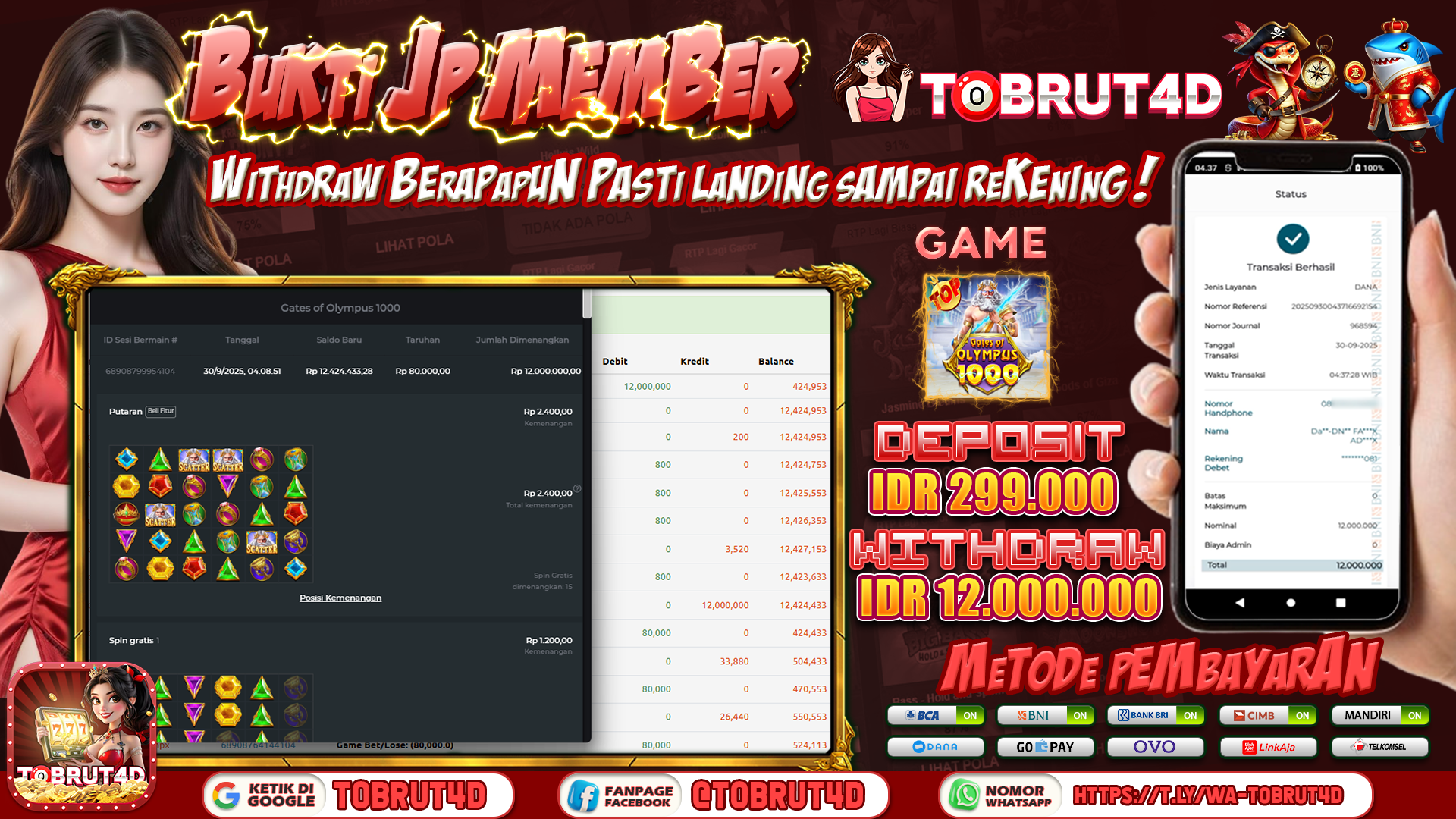 Selamat Kepada ID :SI****26 Telah berhasil mendapatkan kemenangan besar pada permainan GATES OF OLYMPUS 1000 kemenangan Sebesar 12.000.000,Setelah mengisi formulir withdraw dengan kurung waktu hanya 5 – 10 menit pihak tobrut4d sudah melakukan transfer kepada pemilik Userid dan dana sudah dapat di cairkan oleh pemenang. Bukti pembayaran yang kami berikan merupakan bukti pembayaran yang SAH / VALID yang langung di dapatkan melaui tanda transfer transaksi dari Bank yang di tuju.
