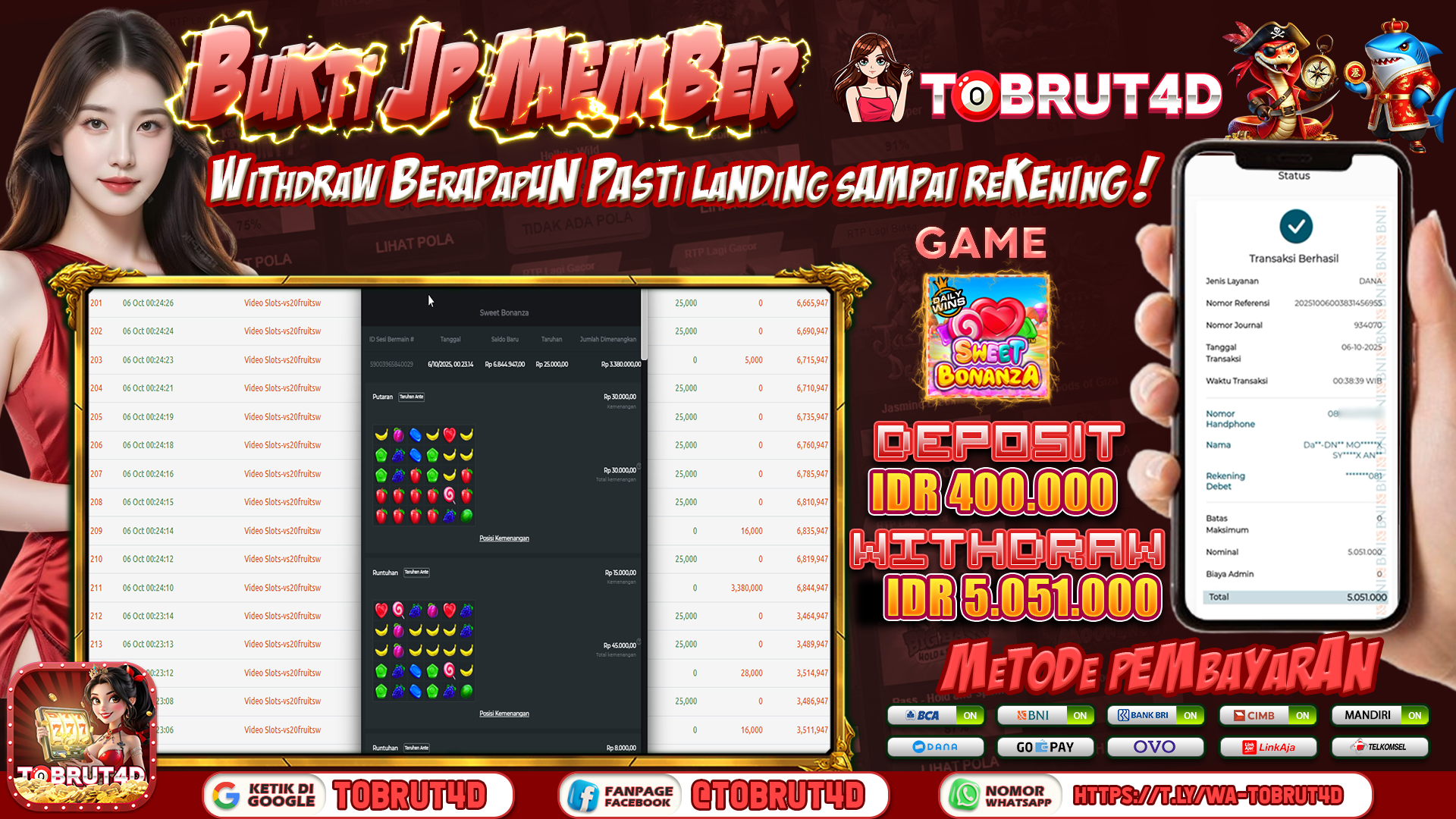 TOBRUT4D JACKPOT SWEET BONANZA RP 5.051.000